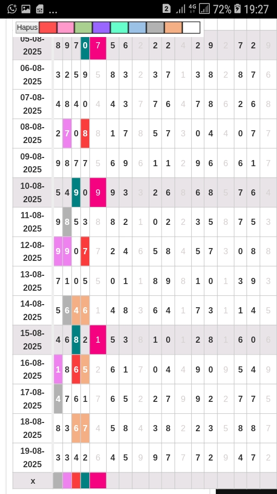 Rumus Angka Mati berdasarkan kepala harian | 07 08 09 10 19 20 21 27 28 31 38 39 40 41 42 43 48 49 50 51 52 53 54 59 60 61 62 63 65 71 73 74 76 85 86 87 96 97 98 |