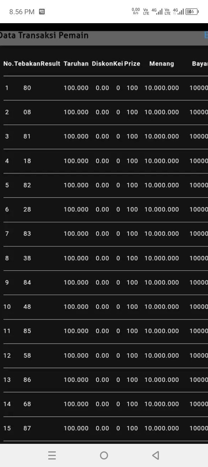 Rumus Kontrol 4 berdasarkan kepala harian | 1256790 3456890 |