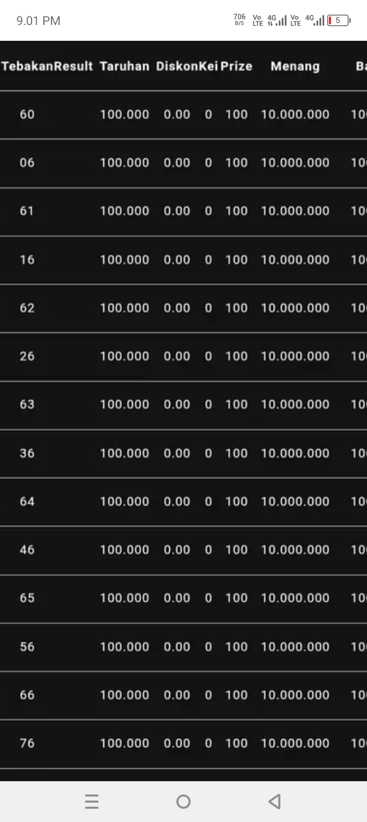 | Rumus Angka Mati berdasarkan kepala harian | 08 09 10 16 17 19 20 27 28 30 31 32 37 38 39 40 41 42 43 48 49 50 51 52 54 59 60 62 63 65 74 75 76 85 86 87 96 97 98 |